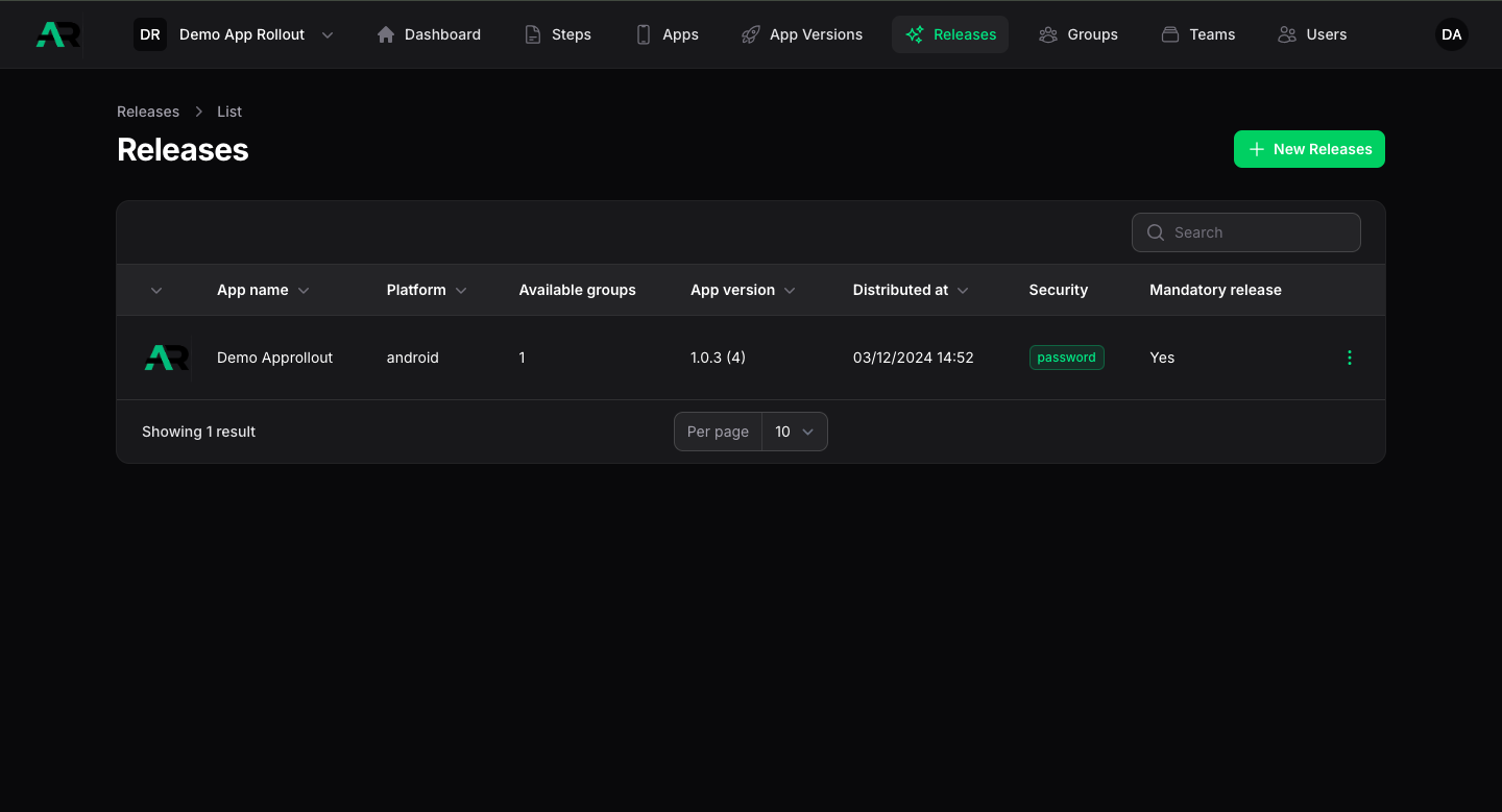 Take control of your app releases with customizable security settings—choose between Public, Private or Password protection for each release